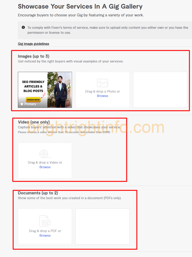 If you don’t have this option then you have to understand and use the first method to add a portfolio on your Fiverr gigs that I explained above in this article.