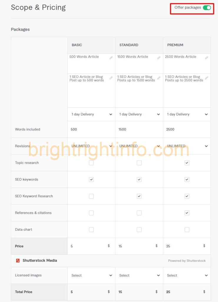 If your gig is new and you don’t have any reviews on it, keep your starting price (basic package’s price) a little lower to attract buyers.